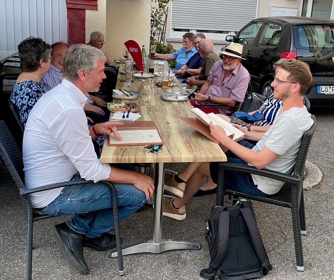 Unser gut besuchter Stammtisch stand dieses Mal ganz im Zeichen des Besuches von Jonas Hoffmann, unserem SPD-Landtagsabgeordneten im Kreis. Im Rahmen seiner Sommertour durch den Wahlkreis nahm er sich Zeit für anregende Gespräche und den direkten Austausch mit den Teilnehmenden.
